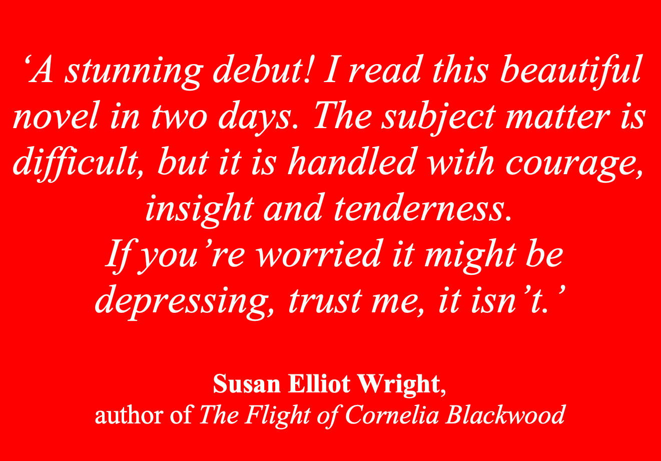 Susan Elliot Wright, author of The Flight of Cornelia Blackwood"I was quite blown away by this wonderful debut... It’s very different, incredibly powerful, intense and emotional – but also a sheer joy to read, and entirely unforgettable."